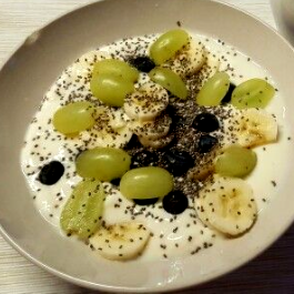 Alpro-Joghurt (gibt es in etlichen Sorten z.B. Erdbeere, Skyr oder Zitrone) mit Schokodrops (Zartbitter ist meistens vegan, ich empfehle die Schokoplätchen von Liliput) oder Cornflakes